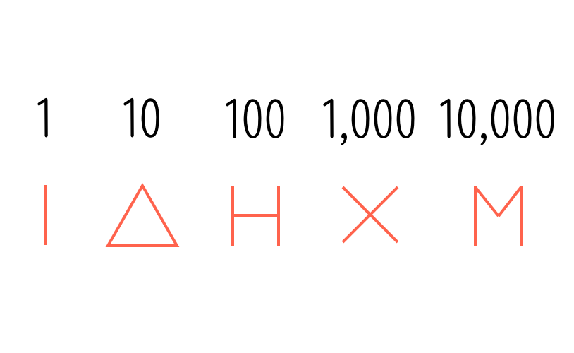 고대의 로마인들은 글자를 사용해서 자신들만의 수 체계를 만들었습니다. 7가지의 기본 기호를 바탕으로 숫자를 만들어 나갔습니다.