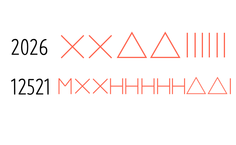 $$ 2026 \rightarrow MMXXVI (2000 + 20 + 6)$$