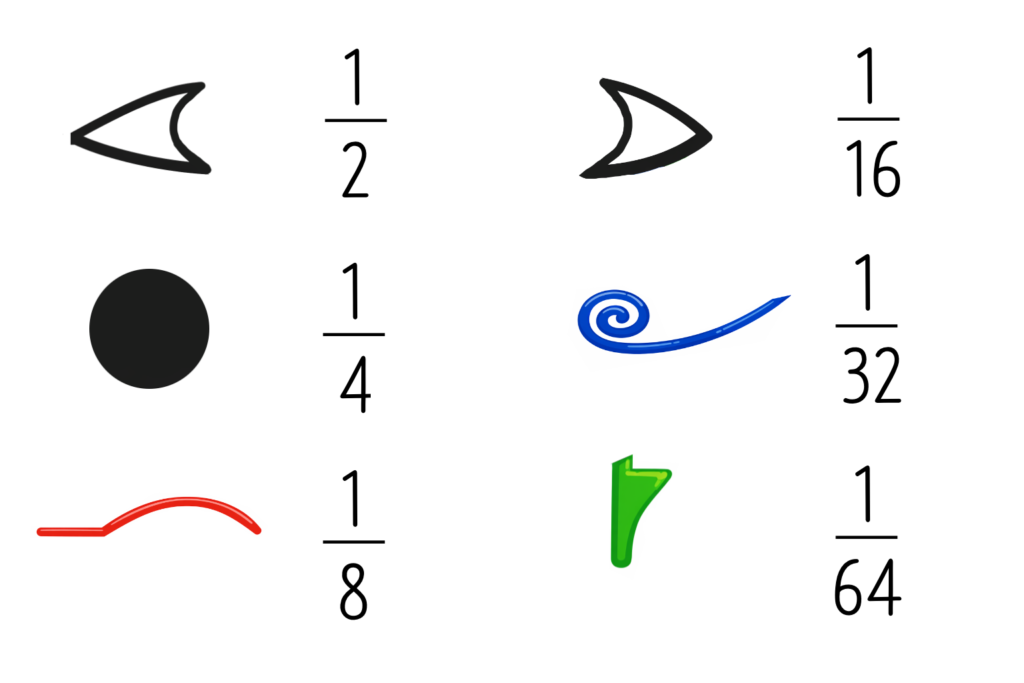 거의 1이 되지만 1/64모자랍니다. 이집트인들은 이 모자란 부분을 신의 마법으로 채워졌다고 믿었습니다. 이 체계를 활용하여 당시의 이집트 사람들은 복잡한 숫자대신 눈이 부분 기호를 조합하여 장부에 기록하며, 곡물을 관리했다고 합니다.