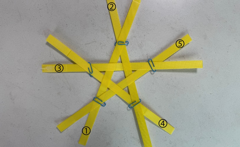 2-5) 세팍타크로 별의 노끈이 교차하는 부분을 클립으로 고정한다.