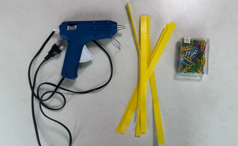 - 준비물: 포장용 플라스틱 노끈, 클립, 글루건